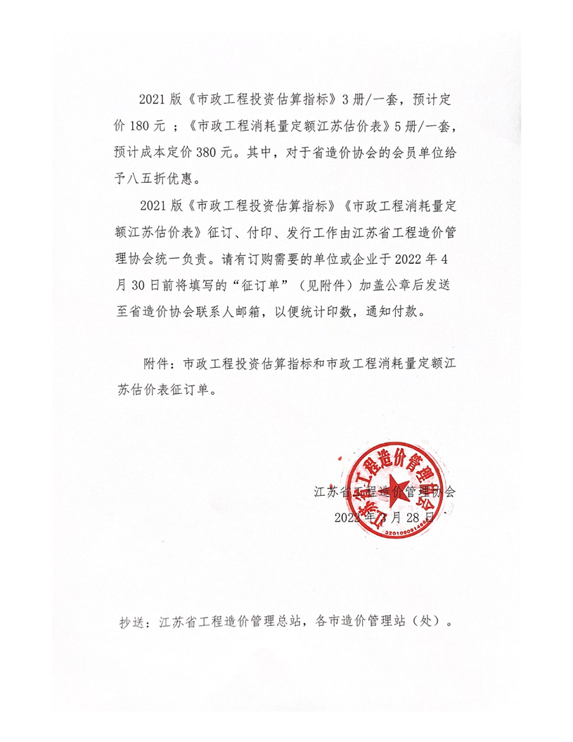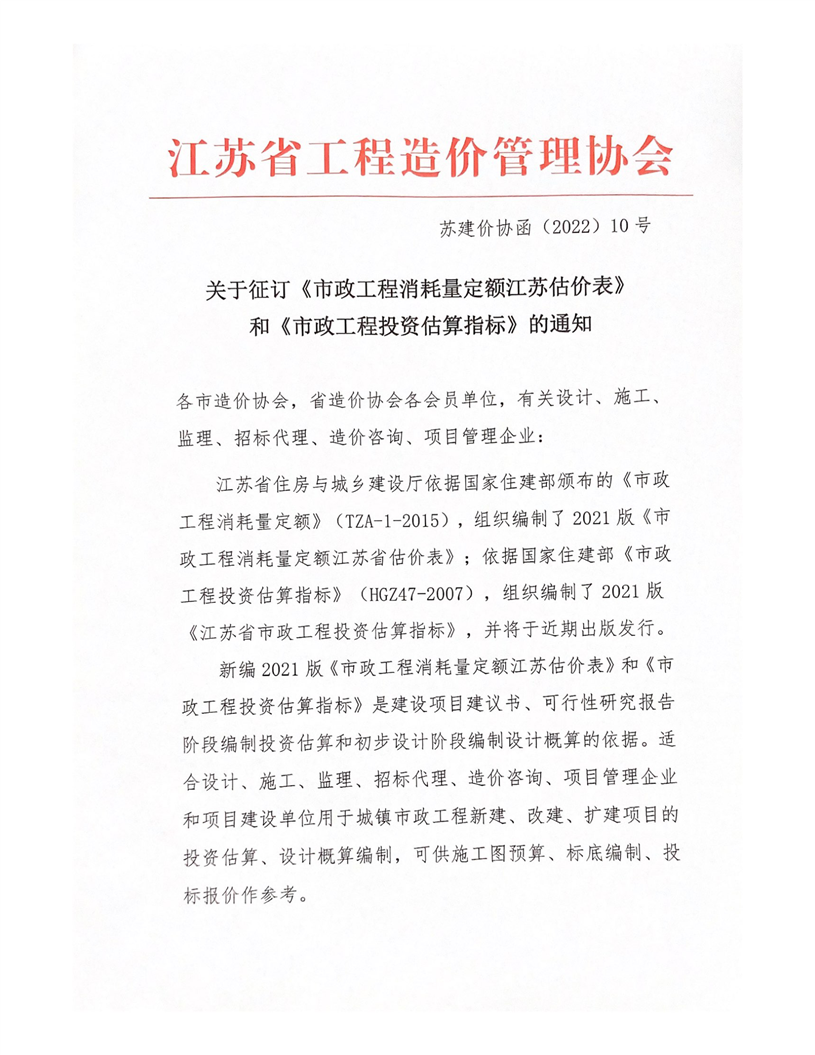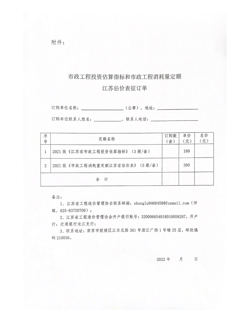 附件:市政工程投资估算指标和市政工程消耗量定额江苏估价表征订单.doc