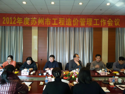 会议由苏州市工程造价管理处侯智慧处长主持,苏州及五个所辖市造价管理部门的全体人员出席了会议。会议主要分三个议程:1、各市(县)交流总结2012年全年造价管理工作;2、讨论二个文件; 3、研究讨论2013年度重点工作。