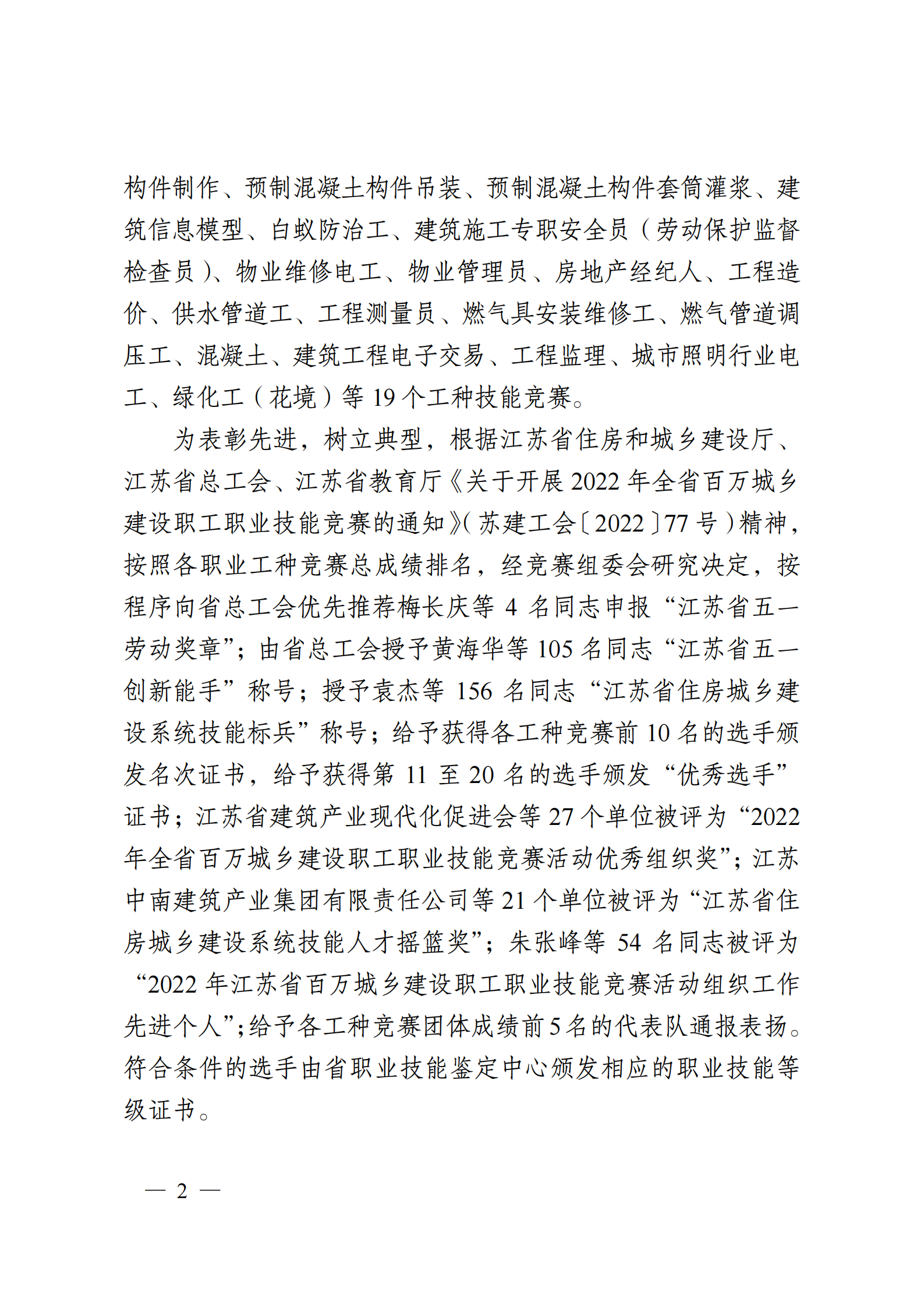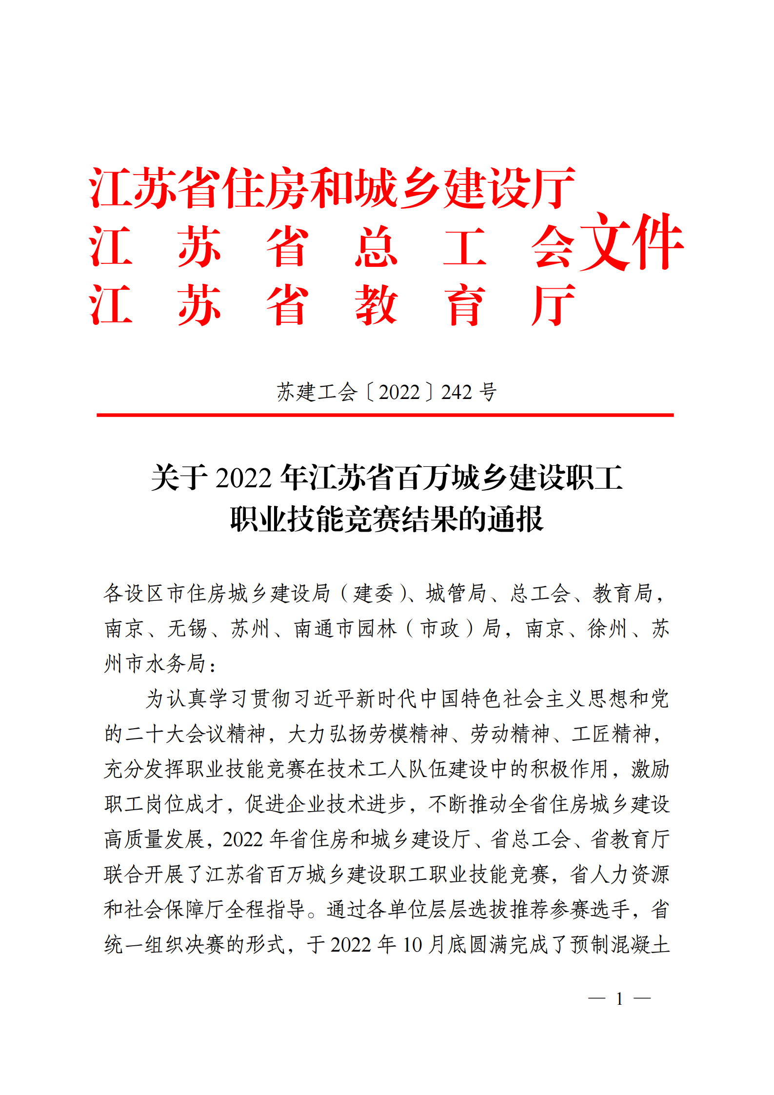 苏建工会〔2022〕242号——关于2022年江苏省百万城乡建设职工职业技能竞赛结果的通报.pdf