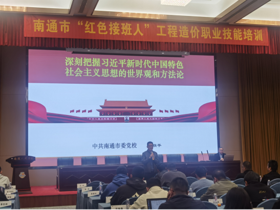 本次培训由南通市造价管理协会邀请专家授课,课程丰富全面,具有很强的针对性和实操性,主要内容包括:政策文件解读、定额解析、广联达软件实操、党建文化学习等。11月10日下午,南通市委党校朱联平教授就如何深刻把握习近平新时代中国特色社会主义思想的世界观和方法论为青年学员上了一堂专题党课,重点解读了“六个必须坚持”的内涵要义,引导青年学员提高思想认识,强化精神共鸣,践行使命担当。课后为培训考核获奖和合格的学员颁发证书,肯定了学员培训期间的学习成果,学员们纷纷表示,会将培训时的所学所思运用于工作实际,不断坚持自我学习,自我提升。