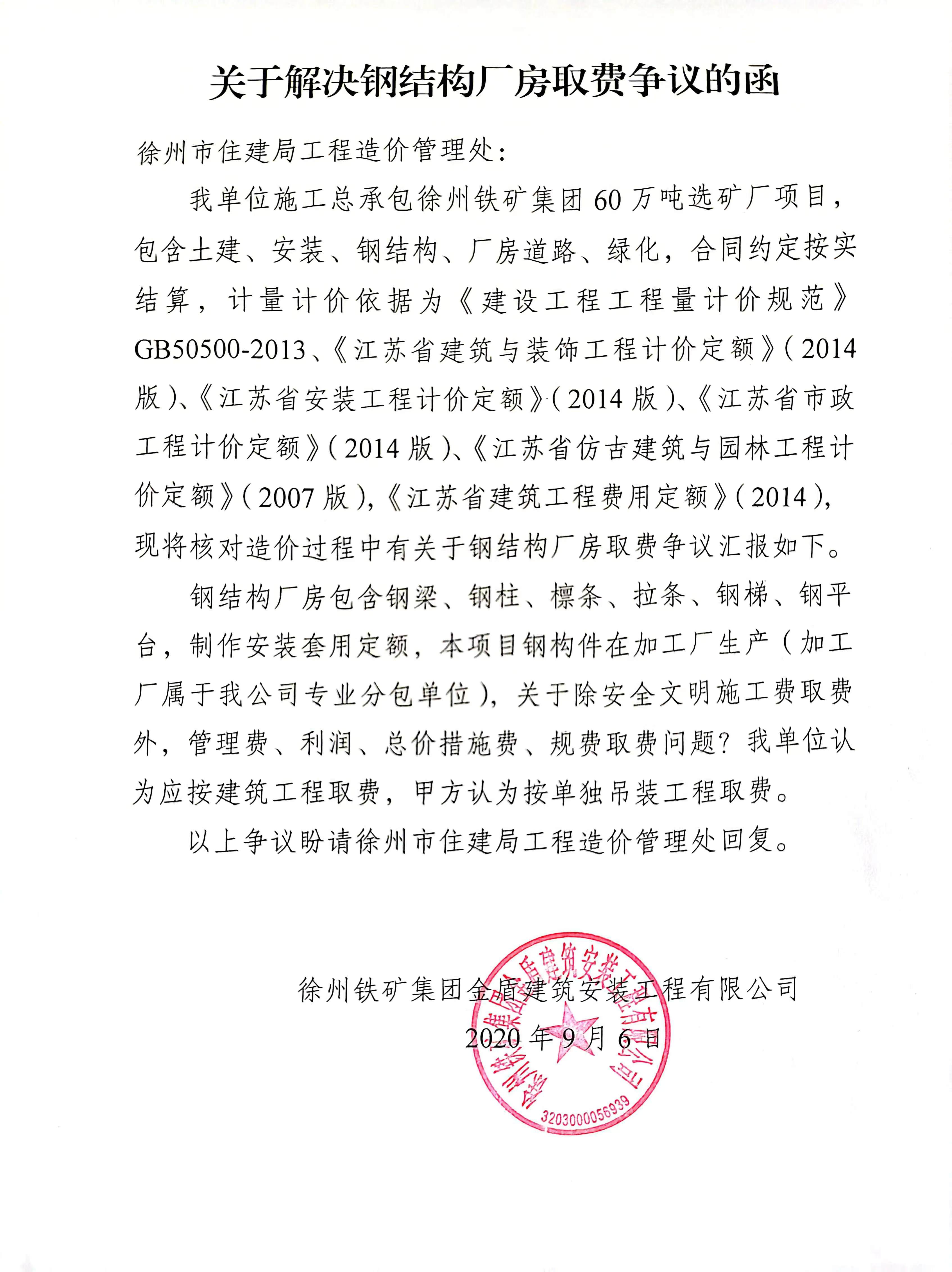 你公司来函咨询钢结构工程取费问题,现答复如下:
