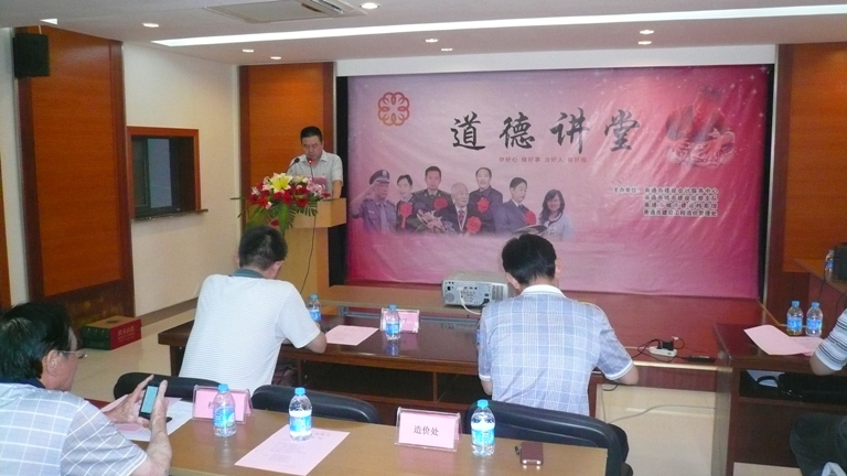 活动由市城建监察支队政委顾新明同志主持。活动的主要内容有:市建设会计服务中心主任王荣祥同志发表讲话;市造价处主任于榕庆同志朗诵了经典名诗《诸葛亮集》诫子篇;市城建档案馆褚希铭同志演讲了动人故事“铁军援川忆往昔”;集体观看了短片“记者眼中的周江疆”并由现场观众进行了点评,市城建档案馆馆长朱建昌同志进行了总结点评;活动最后大家集体合唱了歌曲《心灵之约》,圆满成功完成了本次道德讲堂活动。